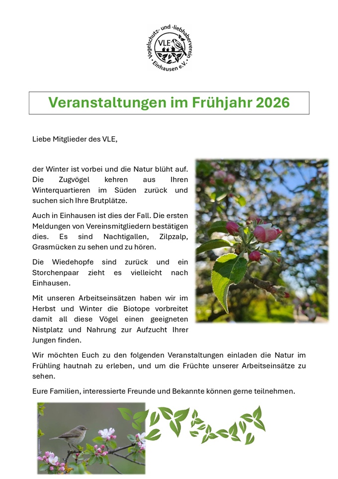 Der Vogelschutz- und -liebhaberverein Einhausen möchte auf dieser Internetseite,