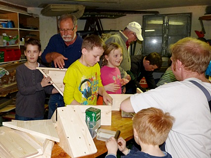 EINHAUSEN. Für jede Jahreszeit haben Werner Glanzner und Sebastian Schumacher passsende Aktivitäten für die Vereinsjugend des Einhäuser Vogelschutz- und -liebhabervereins (VLE) parat. Mit Kreativität und handwerklichem Geschick, unterstützt von engagierten Helfern aus den Reihen der Aktiven, bastelten die beiden Jugendleiter im Einhäuser Bürgerhaus gemeinsam mit den jungen Naturschützern des Vereins Wildbienen-Hotels aus Fichtenbrettern, mit verschiedenen Bohrlöchern versehenen Holzklötzen, Schilfstängeln und verschiedenen anderen Naturmaterialien. Nicht um Unterkünfte für Honigbienen ging es, sondern um Unterschlupf- und Nistmöglichkeiten für Wildbienen, von denen es etwa 30 000 unterschiedliche Arten auf der Erde gibt.