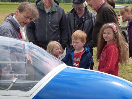 Zum Jagen braucht der Turmfalke möglichst freies Gelände, wo er häufig an seinem typischen Rüttelflug zu erkennen ist. Er verharrt dabei emsig flatternd in der Luft, um unter sich mit "Falkenaugen" zu beobachten, ob sich ein Beutetier zeigt. Seine Nahrung besteht zu etwa vier Fünfteln aus Mäusen, aber auch Maulwürfe, Eidechsen, Käfer und Heuschrecken werden erbeutet. Für die jungen Einhäuser Vogelschützer gab es allerdings noch andere elegante Flieger an diesem Tag zu bestaunen. Ulrike Pawel von der Bensheimer Segelfluggruppe erklärte den großen und kleinen VLE-Aktiven sachkundig die verschiedenen Segelflieger-Typen - und die jungen Vogelfreunde durften sogar im Cockpit Platz nehmen und Höhen- und Seitenruder in Bewegung setzen. Ihren krönenden Abschluss fand die Natur-Radtour schließlich auf der Flugplatz-Terrasse bei einem zünftigen Imbiss mit Kaffee, gekühlten Getränken und Eis. Man darf gespannt sein, ob sich eines Tages auch der eine oder andere junge Einhäuser Vogelschützer vom Bensheimer Flugplatz aus mit einem eleganten Segelflieger in die Lüfte erheben wird. ahe