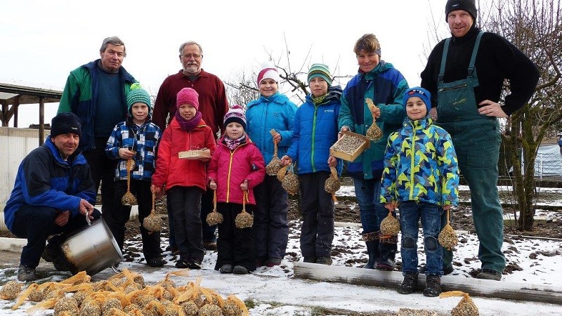 Nach getaner Arbeit hatten alle auch einen guten Hunger. Jeder durfte für die Winterfütterung im eigenen Garten noch 3-4 Futterbällchen mit nach Hause nehmen. Singvögel an der Futterstelle zu beobachten, das ist ein Stück erlebte Natur – allerdings muss unbedingt darauf geachtet werden, dass die Futterhäuschen auch katzensicher platziert werden. Recht herzlichen Dank gilt wie immer bei dieser Aktion der Familie Hofmeyer für das Bereitstellen der Werkstatt und auch des Vorplatzes damit alles gut ablaufen kann.