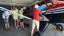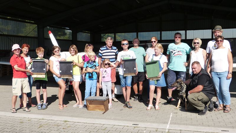 Damit das auch so bleibt, wurde sie als Umweltbeaufrragte in den Vorstand der Segelflugsportgruppe gewählt. So kann sie ein Auge darauf haben. Die vier Nistkästen für Fledermäuse und der eine für Falken werden jetzt als neues Zuhause für die Tiere bereitstehen. Ein Nistkasten für Falken ist schon vor längerer Zeit auch von der Jugend des Vogelvereins gebaut und an der Halle angebracht worden. Er ist sehr gut belegt. Die Funktionärin hatte noch eine weitere Überraschung für die Kids parat: Sie machte mit ihnen eine Führung über den Flugplatz, die Kinder durften sogar in einigen Maschinen Platz nehmen.