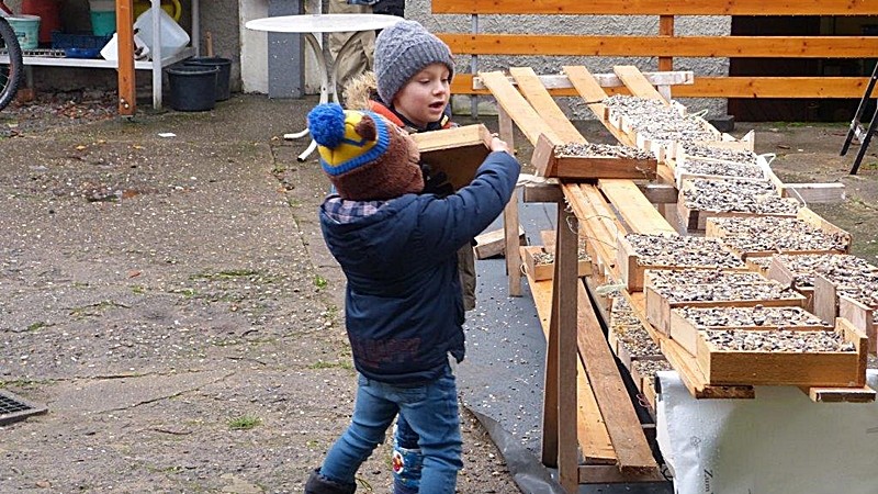 Am Samstag den 09. Dezember 2023 war Treffpunkt in der Elisabethenstraße 5, bei unserem Vereinskollegen Klaus Schumacher. Von 10.00 bis etwa 12.00 Uhr hatte die Jugendgruppe, mit Ihren Betreuern, Fettfutter für die Winterfütterung hergestellt. Schon unsere Kleinsten waren mit großem Eifer dabei und ließen sich nicht von den älteren ihre Arbeit abnehmen, diese hatten dann aber später mit den Erwachsenen ihren Einsatz. Es ist Vorweihnachtszeit und für die Jugendgruppe war es auch gleichzeitig Jahresabschluss, der letzte Termin für 2023. Nach einem Imbiss bedankten sich die Jugendleiter bei den Kindern, Jugendlichen und Betreuern für die gelungenen Aktivitäten die im laufenden Jahr durchgeführt werden konnten, zum Abschied konnte sich jeder mehrere Fettfutterrahmen für den eigenen Garten mit nach Hause nehmen.