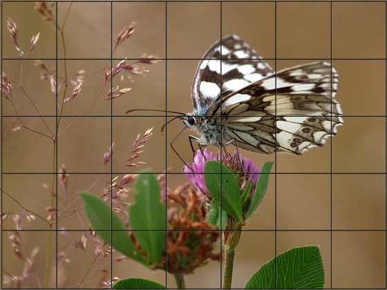 Puzzle: Das Bild zeigt einen Schachbrettfalter (Melanargia galathea).