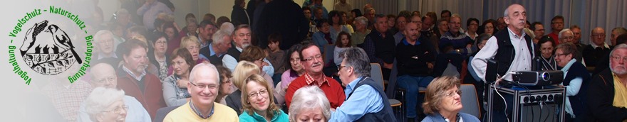 Mit seinem diesjährigen Vortrag bot Heinz Diehl seinen Zuschauern lehrreiche Einblicke in von Menschenhand geschaffenen und gepflegten Biotope, die seit den Fünfzigerjahren aufgrund ihrer häufig „verstreut" in die Landschaft integrierten hochstämmigen alten Obstbaumarten „Streuobstwiesen" genannt werden. Im Winter helfen Streuobstwiesen vielen Vögeln und Säugetieren, Neben eindrucksvollen Fotos von Amsel, Buchfink und Reh, Bergfink und Saatkrähe, die sich am Fallobst laben, zeigte der ambitionierte Naturfotograf anhand von Fährten im Schnee, dass auch Wildschweine, Hasen, Kaninchen und Dachse vom Fallobst der alten Obstbäume profitieren. Wenn in der wärmeren Jahreszeit die Kirschen reifen, betätigen sich die Stare ungeniert als Kirschendiebe.
