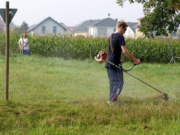 Im Herbst entfernen wir zwischen den Büschen und Bäumen mit Handgeräten das hohe Gras.