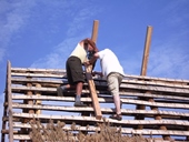 vor Vertigstellung des Reeddaches montiert werden. Nach einigen Monaten konnten wir dann mit Hilfe