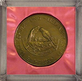 Für Ihre Treue zum Vogelschutz- und -liebhaberverein erhalten die Mitglieder eine Bronzeplakette mit unserem Vereinsemblem und eine entsprechende Urkunde, die von Hermann Heinbach gestaltet wurde.