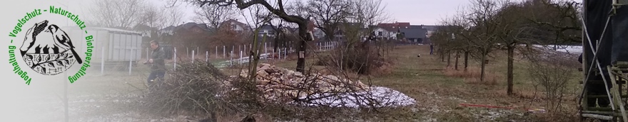 Das Holz von den Bäumen wurde aufgeschichtet, so dass es als Kletterhilfe für Eidechsen dient. Am Waldrand werden die Vogelschützer in einigen Tagen noch einen Krötenzaun errichten. Als sehr schade bezeichnete es der stellvertretende Vereinsvorsitzende Volker Knaup, dass zahlreiche Zeitgenossen den Respekt vor der Natur verloren haben und arglos mit ihr umgehen. So musste man beispielsweise die Streuobstwiese, auf der man arbeitete, einzäunen, um sich gegen ungebetene Besucher zu sichem.