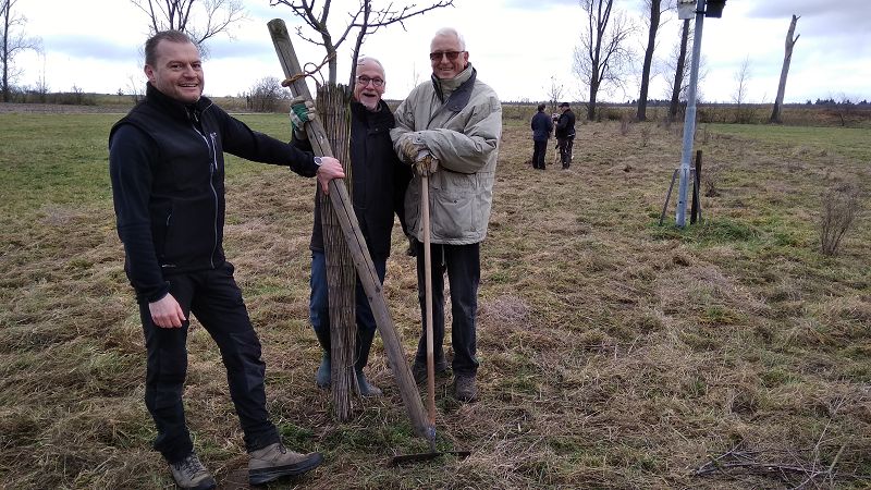 Demnächst wird mit der Deichsanierung der Weschnitz begonnen und zu diesem Zweck wurden Markierungen gesetzt, dabei mussten wir Feststellen das ein junger Baum den wir vor 2 Jahren gepflanzt hatten im Einzugsbereich der vorgesehenen Bearbeitungsfläsche lag. Kurzentschlossen haben wir den Baum Umgepflanzt und setzten ihn an einen Platz der außerhalb der vorgesehenen Umbaufläche liegt, auch die anderen Bäume wurden geschnitten und neu abgestützt. Nachdem der Materialanhänger wieder beladen war und alles verstaut war blieb noch Zeit für einen kleinen Umtrunk den wir leider frühzeitig beenden mussten da es anfing zu Regnen und der einsetzende Wind sehr kühl wurde. Zum Schluss bleibt nur noch zu sagen dass es trotz der wiedrigen Umstände ein gelungener Einstz war.