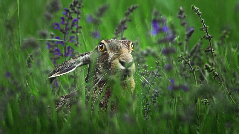 Heinz Diehl startete seinen Vortrag mit einer im Spätherbst aufgenommen Bilderserie in den heimischen Wiesen und zu den dort lebenden Tieren. Nebel und frühmorgendlicher Reif überzogen die Pflanzen und schufen eine ganz besondere Atmosphäre. Wie der Winter seine Spuren in der Natur hinterlässt, zeigten weitere Aufnahmen, die bei den Zuschauern einen besonderen Eindruck hinterließen. So konnte man sehen, wie ein Reh auf schneebedecktem Boden nach Nahrung sucht. Während den Sommermonaten ist die Farben- pracht von Pflanzen wie Glockenblume oder Frauenmantel kaum zu überbieten, für viele Tiere und Insekten dienen sie als Nahrungsquelle und zur Rückzugsmöglichkeit. Da schlüpft dann ein Schwalbenschwanz-Schmetterling gerade aus seinem Kokon und ein Feldhase lugt frech mümmelnd aus dem Gras in die Linse. Nicht selten muss sich Heinz Diehl auch mit verschiedenen Utensilien tarnen, um seine scheuen Motive nicht zu erschrecken oder zu vertreiben.