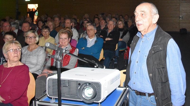Rund 300 interessierte Zuschauer waren in die bestuhlte Sporthalle gekommen, um weitere atemberaubende Fotografien von Heinz Diehl zu bewundern. Er ist seit vielen Jahren Mitglied der Gesellschaft Deutscher Tierfotografen (GDT) und war lange Regionalgruppenleiter für die Gebiete Hessen, Pfalz, Saarland. Zu seinen fotografischen Spezialitäten zählen Bilder von der Makroaufnahme bis zur Land- schaftstotalen. Dabei entstanden auch Bilder mit denen er nationale und internationale Auszeichnungen gewonnen hat. Offizieller Veranstalter war der örtliche Vogelschutz- und -liebhaberverein. Vorsitzender Hermann Heinbach, der gemeinsam mit Heinz Diehl den Abend organisiert hatte, freute sich ganz besonders darüber, dass sehr viele Vogel- und Naturfreunde - auch von außerhalb - gekommen waren. Man sei im Verein sehr stolz, einen renommierten Naturfotografen in seinen Reihen zu haben, machte Heinbach deutlich.