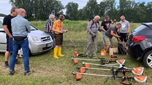 Vogelschützer inspizieren Vereinsgrundstücke.
