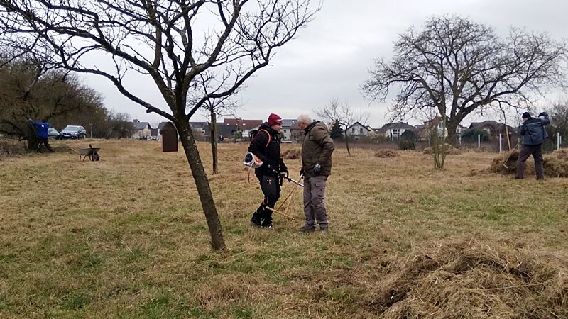 Am letzten Januar-Samstag beteiligte er sich zusarmnen mit weiteren 13 Mitgliedern aus den Reihen des Vogelschutzvereins am ersten größeren Arbeitseinsatz des Jahres. Es galt, die durch den Verein von der Gemeinde gepachtete Streuobstwiese an der verlängerten Carl-Benz-Straße für den beginnenden Frühling vorzubereiten. Denn um die Artenvielfalt auf diesem Naturschutzgrundstück zu fördern, bedarf es durchaus die Hilfe durch den Menschen. Einmal im Jahr, vor Beginn der Vegetationsperiode ist eine komplette Mahd notwendig.