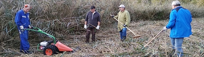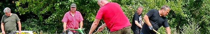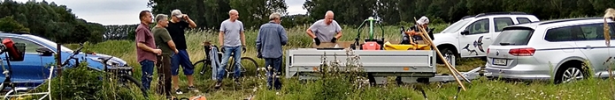 Im August waren wir mit dem Fahrrad in der Gemarkung unterwegs, um zu sehen, welche Arbeiten am dringendsten nötig sind. Sehr schnell wurde den Teilnehmern der Tour klar, dass jede Menge Arbeit auf uns zukommen würde. Vor allem Mäharbeiten müssten dringend durchgeführt werden. Günter Weickert, der die Gruppe durch die Gemarkung führte, hatte sich bereits im Vorfeld der Versammlung einen Überblick über den Zustand der Flächen, die vom Verein gepflegt werden, verschafft und informierte ausführlich darüber. Das Einhäuser Bruch konnte man aufgrund der vorherrschenden tiefen Bodenverhältnisse nicht inspizieren. Nach der Radtour trafen wir uns zu einem geselligen Abschluss auf dem Gelände der Klosterspatzen.