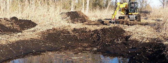 Im Spätherbst 2020 hatten wir bereits mit den Vorbereitungen begonnen um einige Teiche in unserem Schilfgebiet anlegen zu können. im Februar 2021 war es dann soweit, ein Bagger rückte an und versuchte die Wasserlöcher auszuheben, was auch teilweise gelang, leider war der Boden schon soweit durchnässt dass es fast nicht mehr möglich war, trotzdem kann man mit dem Ergebnis mehr als zufrieden sein.