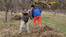 Schneiden. Das Bienenhotel, vor vielen Jahren von Herbert Neber angefertigt, wurde repariert und der Unterstand wurde frisch