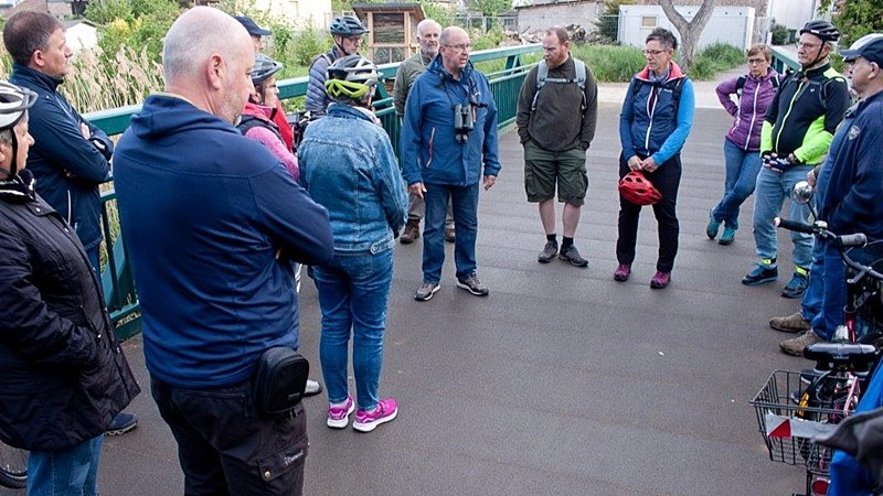 Alexander Hedderich freute sich bei seiner Begrüßung als Vorsitzender über die Teilnehmerzahl, die frühmorgens bei sehr schönem Wetter eine schöne Tour erwarten durften. Volker Knaup, Beauftragter der Staatlichen Vogelschutzwarte, zeichnete sich für die Tourplanung verantwortlich.