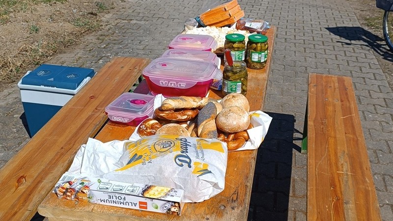 Vorsitzender Alexander Hedderich dankte den Aktiven und freute sich über diesen nächsten Meilenstein. Das spornte dann die "Schlosser" im Verein an, gleich den nächsten Baustein fortzuführen. Regale sollen entstehen, die wegen der erforderlichen Tragfähigkeit mit Stahl und durch Schweißarbeiten zusammengebaut werden. Schon in der Woche darauf wurden sie bei Ihrer Pause überrascht. Mehr dazu im nächsten Bericht. Schön, solche Trupps im Verein zu wissen!