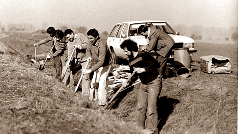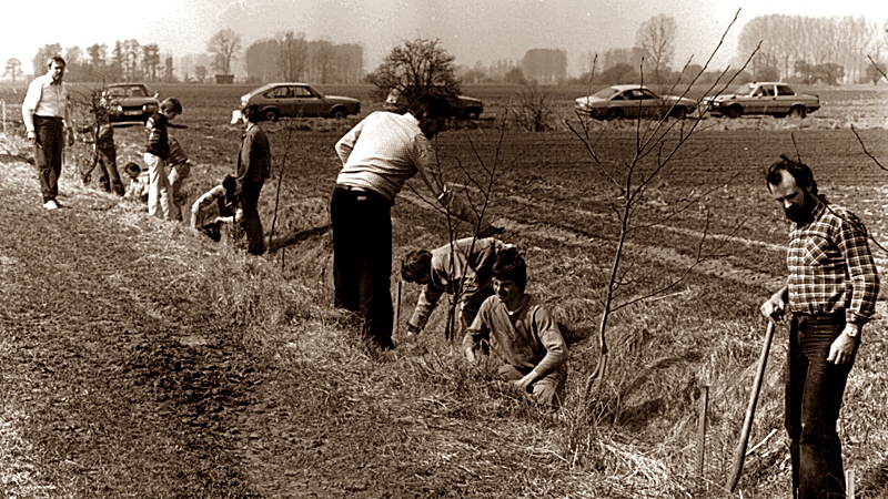 Die ausgeräumten Gräben in der Feldgemarkung forderten uns heraus, hier einiges zu tun. Ein kleiner Teich mit Pappelbestand wurde rekultiviert, erweitert und nach Vorlagen der Unteren Naturschutzbehörde seiner Bestimmung übergeben. Am 24. März 1979 wurden in einer Großaktion im Mittelgraben in der Südgemarkung 400 standortverträgliche Hecken und Bäume angepflanzt. Eine gewaltige Leistung. 1980 trat der VLE dem Verband Deutscher Waldvogelpfleger und Vogelschützer Landesverband Hessen bei. 1980 wurden ebenfalls 200 Bäume und Hecken in der ehemaligen Sandgrube Nord angepflanzt.
