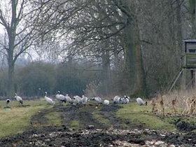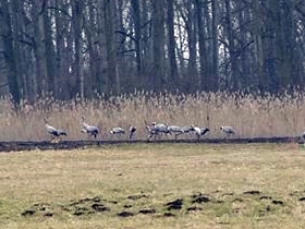 Aber es gibt auch genügend Füchse. Da das Bruch nicht weiter bewässert wird, gibt es die für Kraniche typischen Rastplätze mit seichtem Wasser derzeit nicht. Deshalb mussten diese Vögel im Schilf oder auf freier Fläche übernachten, was mancherlei Gefahren birgt.