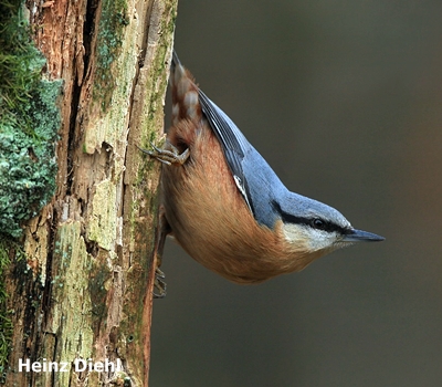 Wenn wir einen Vogel kopfunter den Baumstamm hinablaufen sehen, ist es immer der Kleiber. Er ist der einzige Vogel, der dieses Kunststück fertig bringt. Kleiber bedeutet eigentlich „Kleber". Denn wenn er die Nisthöhle eines größeren Vorgängers übernimmt, deren Öffnung für ihn zu weit und daher gefährlich ist, so verkleinert er sie mit einer Mischung aus Lehm und Speichel, die später verhärtet, auf das ihm passende Maß. Man kann ihm in schütteren, lichten Laub-, Misch und Nadelwäldern, aber oft auch in Parkanlagen und großen Gärten begegnen. Er bewohnt ganz Europa mit Ausnahme Irlands und der nördlichsten Gebiete Skandinaviens.