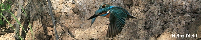 Wasser ist das zentrale Element im Lebensraum des Eisvogels, trotzdem ist er nicht an allen Gewässern zu Hause. Nur an naturnahen oder wenig vom Menschen beeinflussten Bächen, Flüssen oder Teichen mit einem guten, artenreichen Fischbestand findet der Eisvogel genügend Kleinfische, von denen er sich und seine Brut hauptsächlich ernährt. Der Fischbestand wiederum hängt von der Wasserqualität, von der Durchgängigkeit der Gewässer für wandernde Arten, aber auch von einem hohen Strukturreichtum unter der Wasseroberfläche ab. Erst dann kann sich auch die Fischbrut reich entfalten. Aber auch wenn ein Gewässer dem Eisvogel ausreichend Nahrung bietet, ist das erst die sprichwörtliche „halbe Miete“ Der flinke Fischjäger ist optimal an seinen Lebensraum angepasst. Seine Jagdtechnik ist ausgefeilt: Im Sturzflug taucht er bis zu 60 Zentimeter tief ins Wasser ein und binnen Sekunden mit seiner überraschten Beute wieder auf.